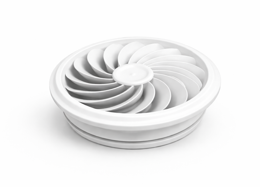 Round Swirl Diffusers are designed to deliver high-induction air distribution with excellent mixing performance. Featuring a radial swirl pattern, they ensure rapid and uniform air diffusion, maintaining consistent temperature and comfort throughout the space.